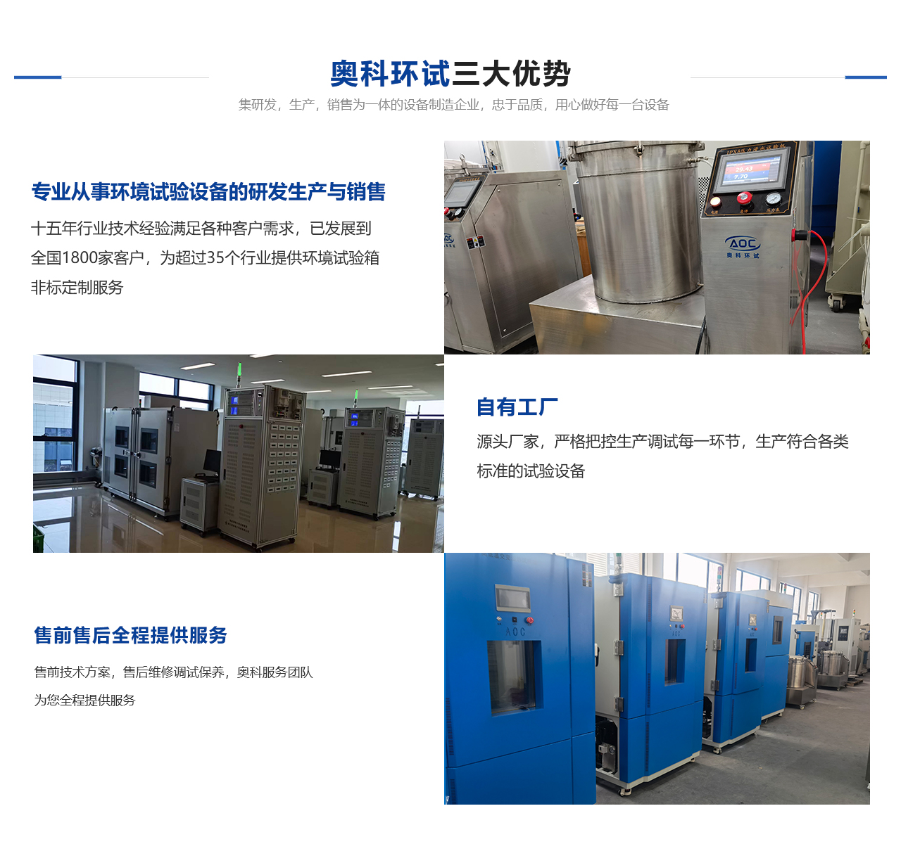 安徽奧科試驗(yàn)設(shè)備有限公司隸屬于杭州奧科環(huán)境試驗(yàn)設(shè)備有限公司直屬分公司,是一家從事各種試驗(yàn)設(shè)備研發(fā)、生產(chǎn)與銷售一體的技術(shù)單位??偣緭碛袕?qiáng)大的技術(shù)團(tuán)隊(duì)及科學(xué)嚴(yán)謹(jǐn)?shù)纳a(chǎn)流程,鑄就了產(chǎn)品質(zhì)量。公司本著“以質(zhì)量求生存,以信譽(yù)求發(fā)展”的原則,為科研、軍事、航空、電子、汽車、石油、化工、醫(yī)療、通訊等各大院校和企事業(yè)單位提供符合GB、GJB、IEO、ISO、ASTM、MIL、DIN等標(biāo)準(zhǔn)的各類環(huán)境試驗(yàn)設(shè)備,并可根據(jù)用戶的需求設(shè)計(jì)制造各類非標(biāo)性設(shè)備。奧科奉行“進(jìn)取求實(shí)嚴(yán)謹(jǐn)團(tuán)結(jié)”的方針,不斷開拓創(chuàng)新,以技術(shù)為核心、視質(zhì)量為生命、奉用戶為上帝,竭誠(chéng)為您提供高性價(jià)比的自控產(chǎn)品及無(wú)微不至的售后服務(wù)。